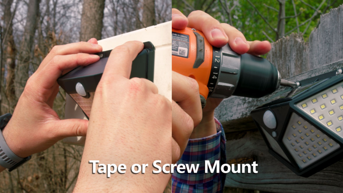 The SolarBright FloodLight™ is built with a flat-rear surface along with two screw holes. Having these two options allows the light to be taped or screwed to almost any surface.